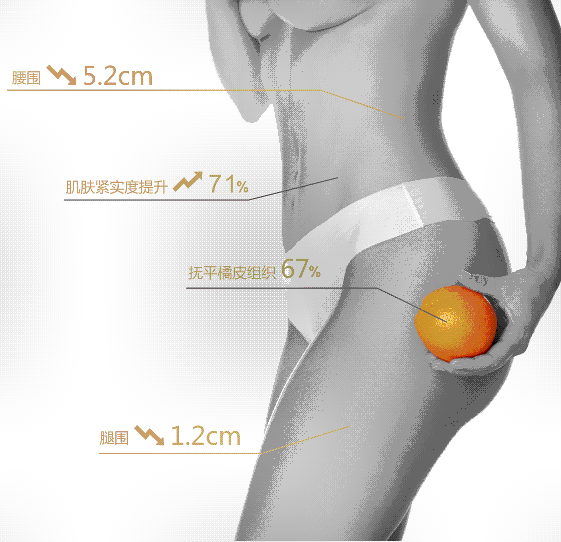 消除橘皮组织、消除蜂窝组织炎症、改善肥胖纹、预防静脉曲张、刺激循环代谢、完美塑造腿部线条